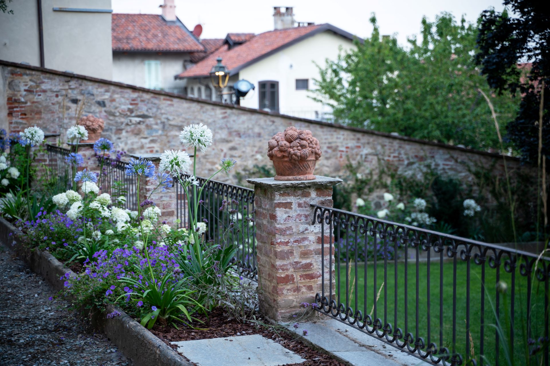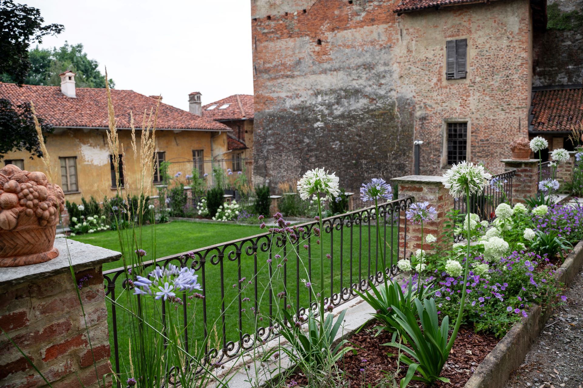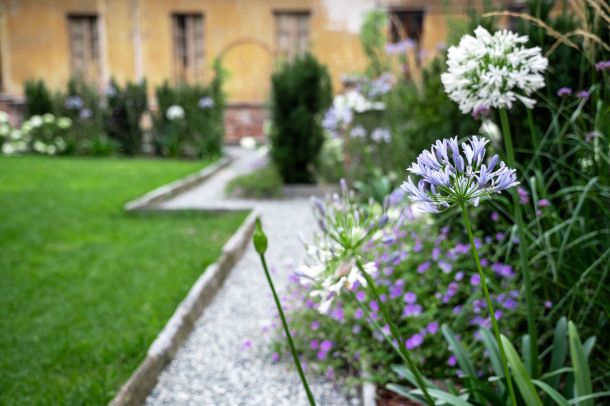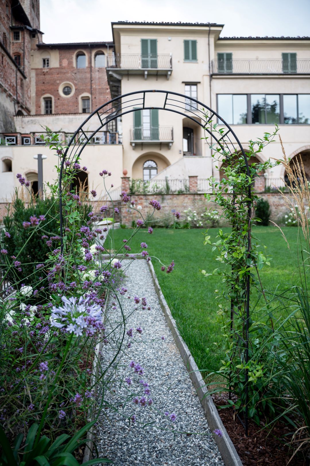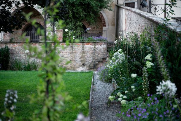 Dove il tempo sembra essersi fermato, tra stretti vicoli e ripide scalinate, il team ARMANDO realizza un giardino su più livelli, incastonato tra le mura storiche del marchesato. Aiuole naturali, rigide e dinamiche al contempo, abbracciano su più lati un prato scandito e definito da percorsi in pietra e ghiaia. Candide fioriture e spighe slanciate danzano e movimentano il giardino; colonne e quinte di tassi rendono formale e solenne il contesto mentre leggerezza ed eleganza pervadono l'atmosfera. Dalle ombrose fronde dell'acero secolare quiete e freschezza si diffondono su ogni elemento del giardino.