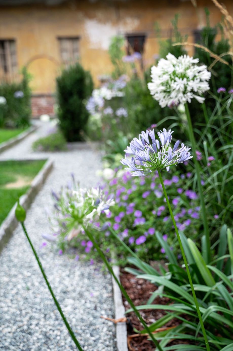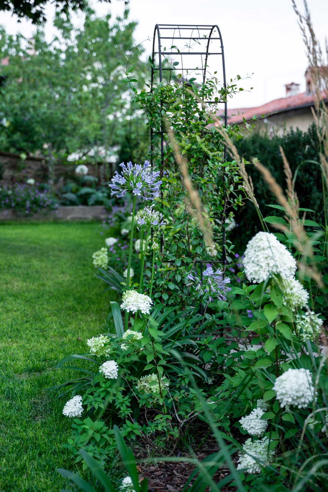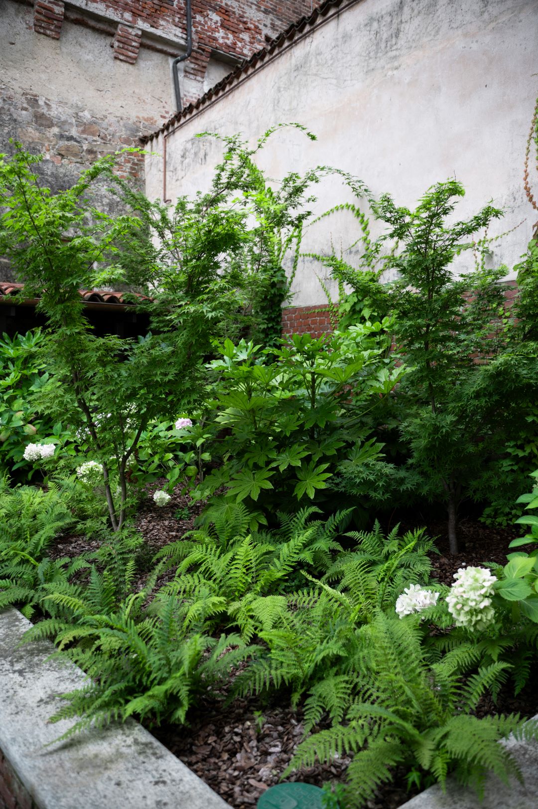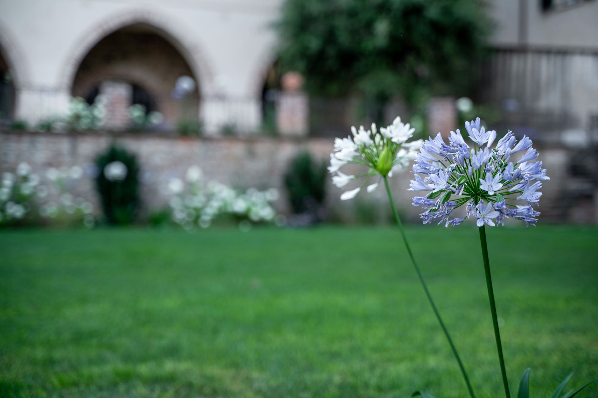 Dove il tempo sembra essersi fermato, tra stretti vicoli e ripide scalinate, il team ARMANDO realizza un giardino su più livelli, incastonato tra le mura storiche del marchesato. Aiuole naturali, rigide e dinamiche al contempo, abbracciano su più lati un prato scandito e definito da percorsi in pietra e ghiaia. Candide fioriture e spighe slanciate danzano e movimentano il giardino; colonne e quinte di tassi rendono formale e solenne il contesto mentre leggerezza ed eleganza pervadono l'atmosfera. Dalle ombrose fronde dell'acero secolare quiete e freschezza si diffondono su ogni elemento del giardino.