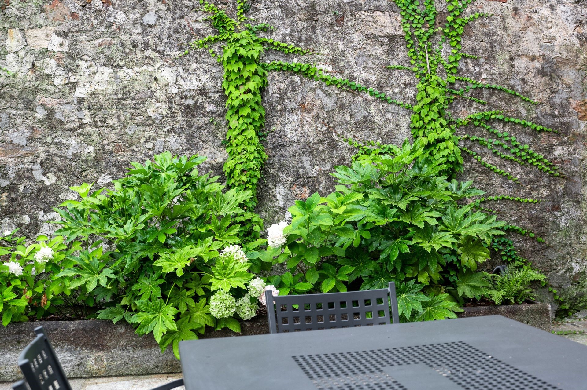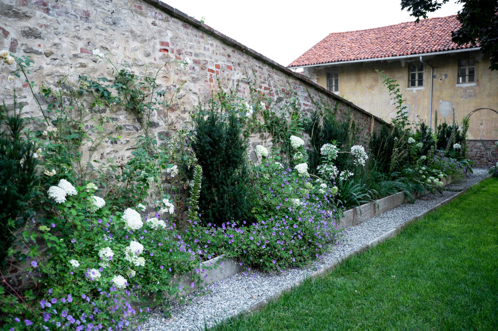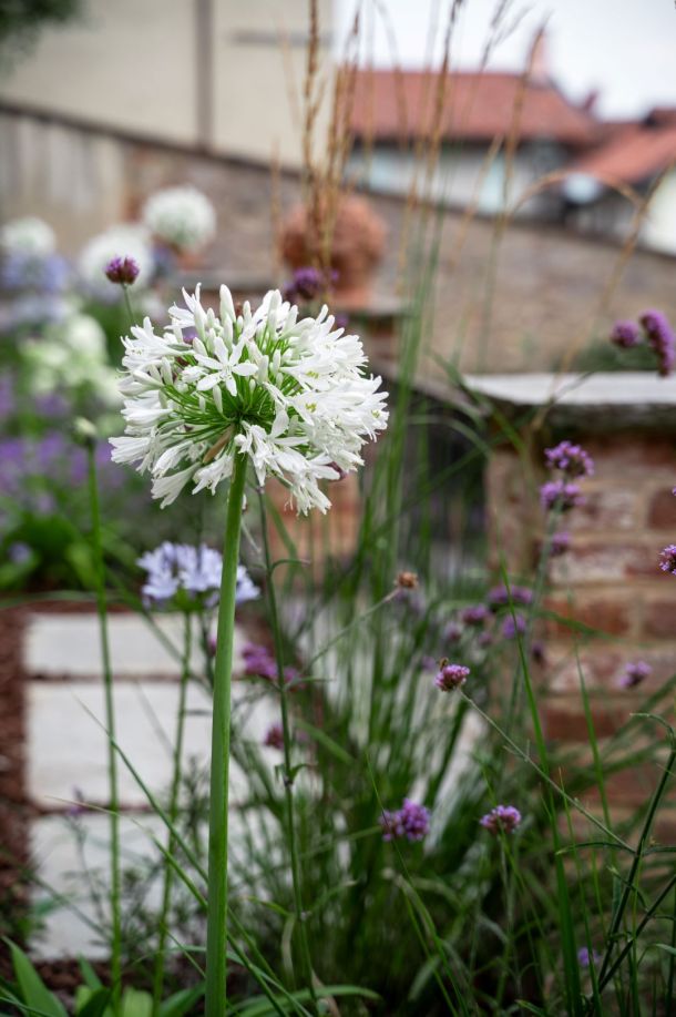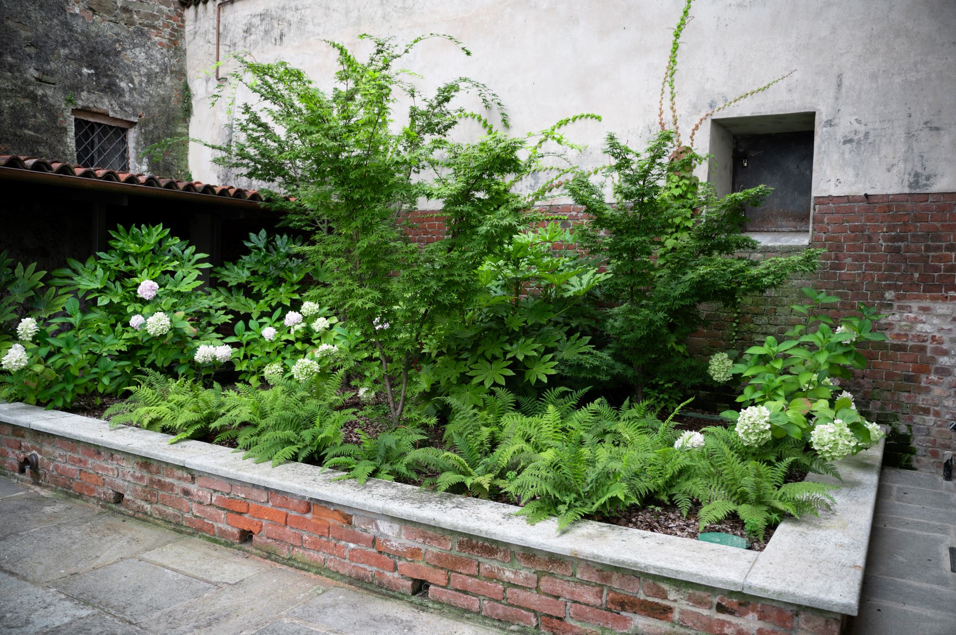 Dove il tempo sembra essersi fermato, tra stretti vicoli e ripide scalinate, il team ARMANDO realizza un giardino su più livelli, incastonato tra le mura storiche del marchesato. Aiuole naturali, rigide e dinamiche al contempo, abbracciano su più lati un prato scandito e definito da percorsi in pietra e ghiaia. Candide fioriture e spighe slanciate danzano e movimentano il giardino; colonne e quinte di tassi rendono formale e solenne il contesto mentre leggerezza ed eleganza pervadono l'atmosfera. Dalle ombrose fronde dell'acero secolare quiete e freschezza si diffondono su ogni elemento del giardino.
