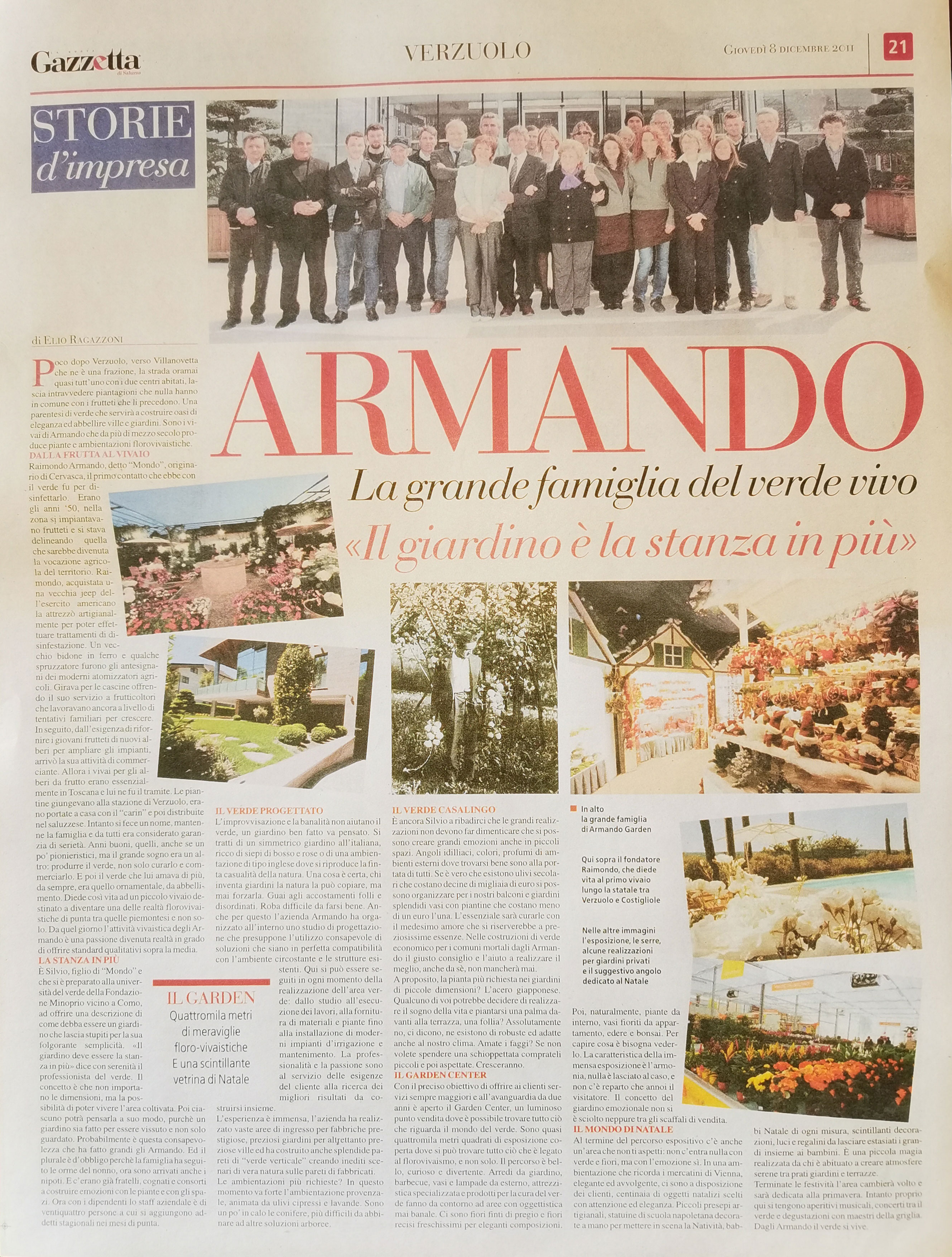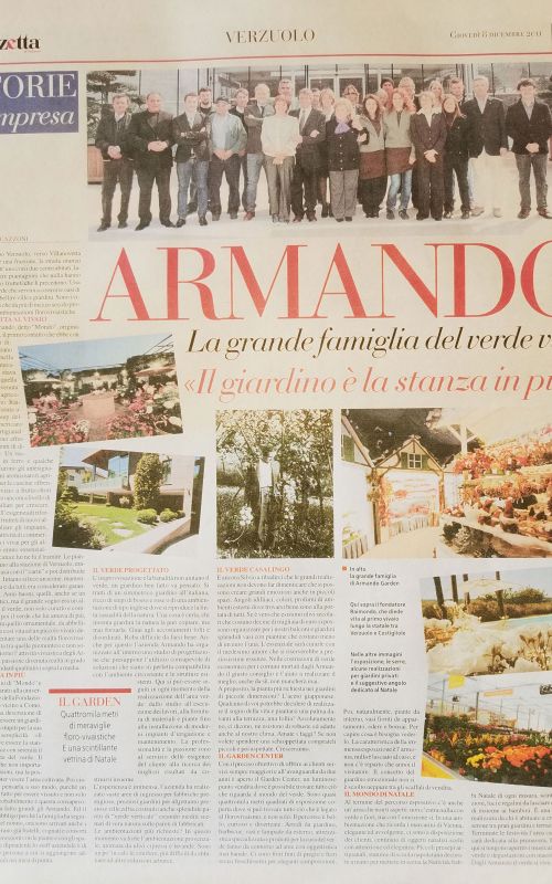 Anche dopo la dipartita di Raimondo, gli Armando hanno continuato a credere e investire nel progetto di famiglia. Nel 2010 viene tagliato un nuovo grande traguardo: l’innovativo Garden Center di Verzuolo, una struttura di 4 mila metri quadrati destinati ad accogliere una delle più ampie esposizioni Piemontesi di verde, con il preciso intento di offrire ai clienti servizi sempre maggiori e all’avanguardia. Un polo florovivaistico importante, guidato dalla terza generazione, dove operano circa 25 persone tra soci, addetti alla vendita, progettisti e addetti alla manutenzione dei giardini.