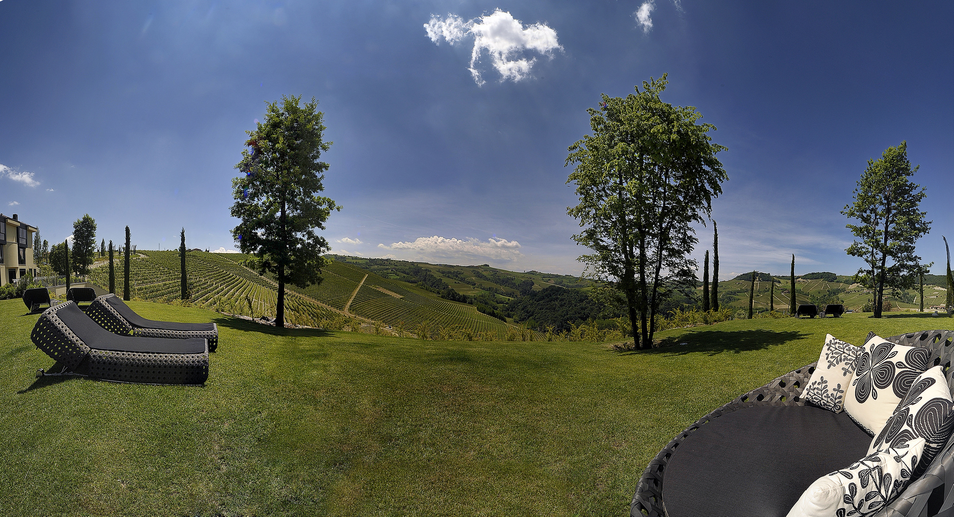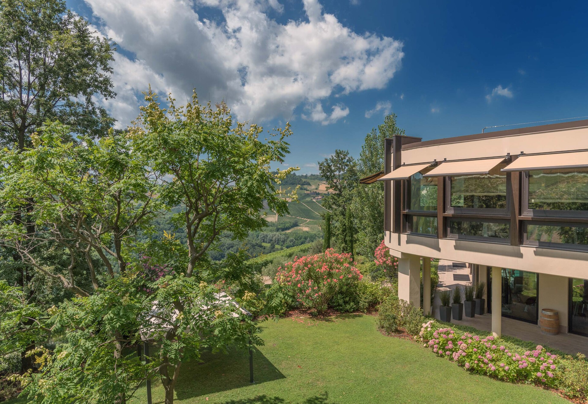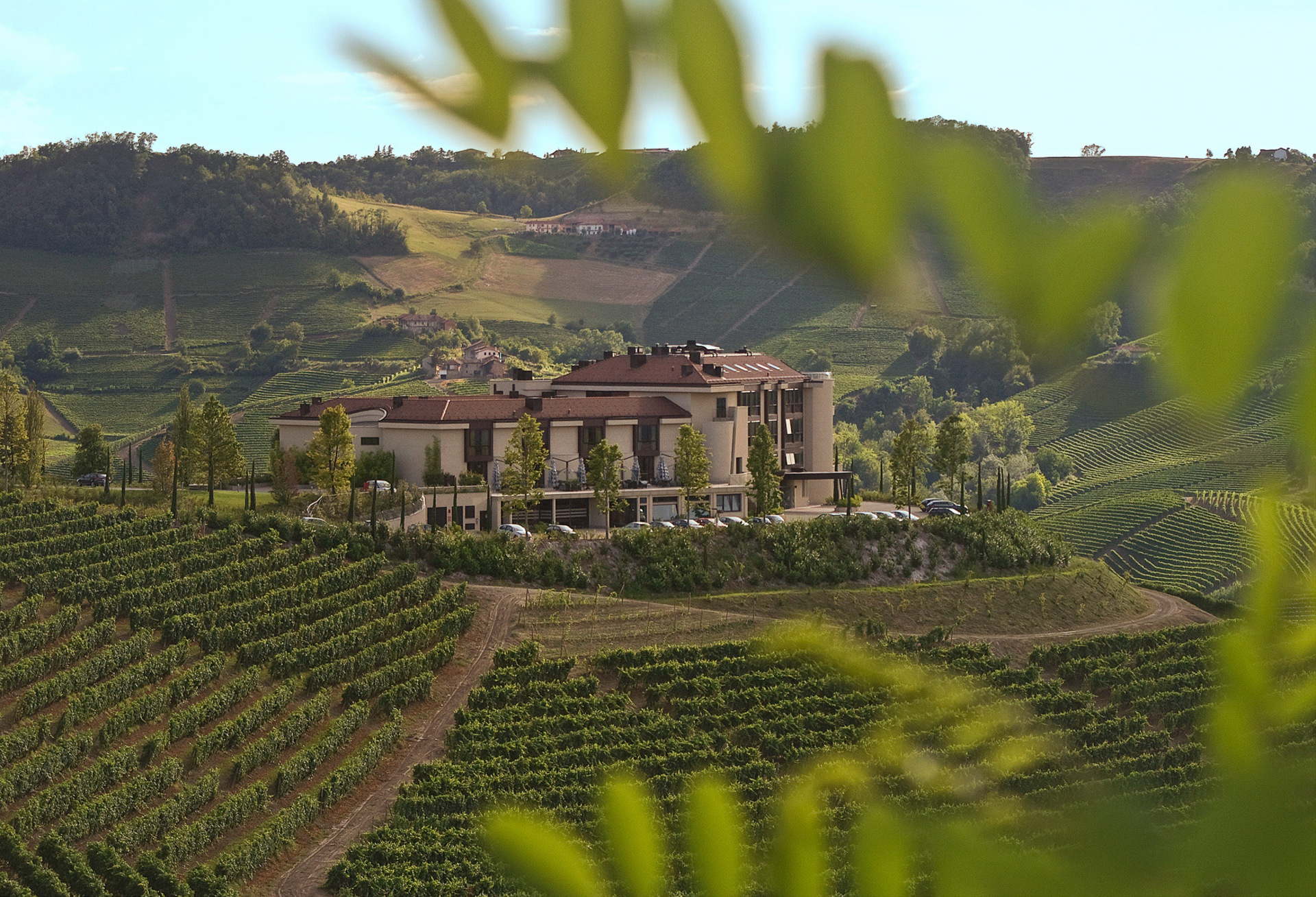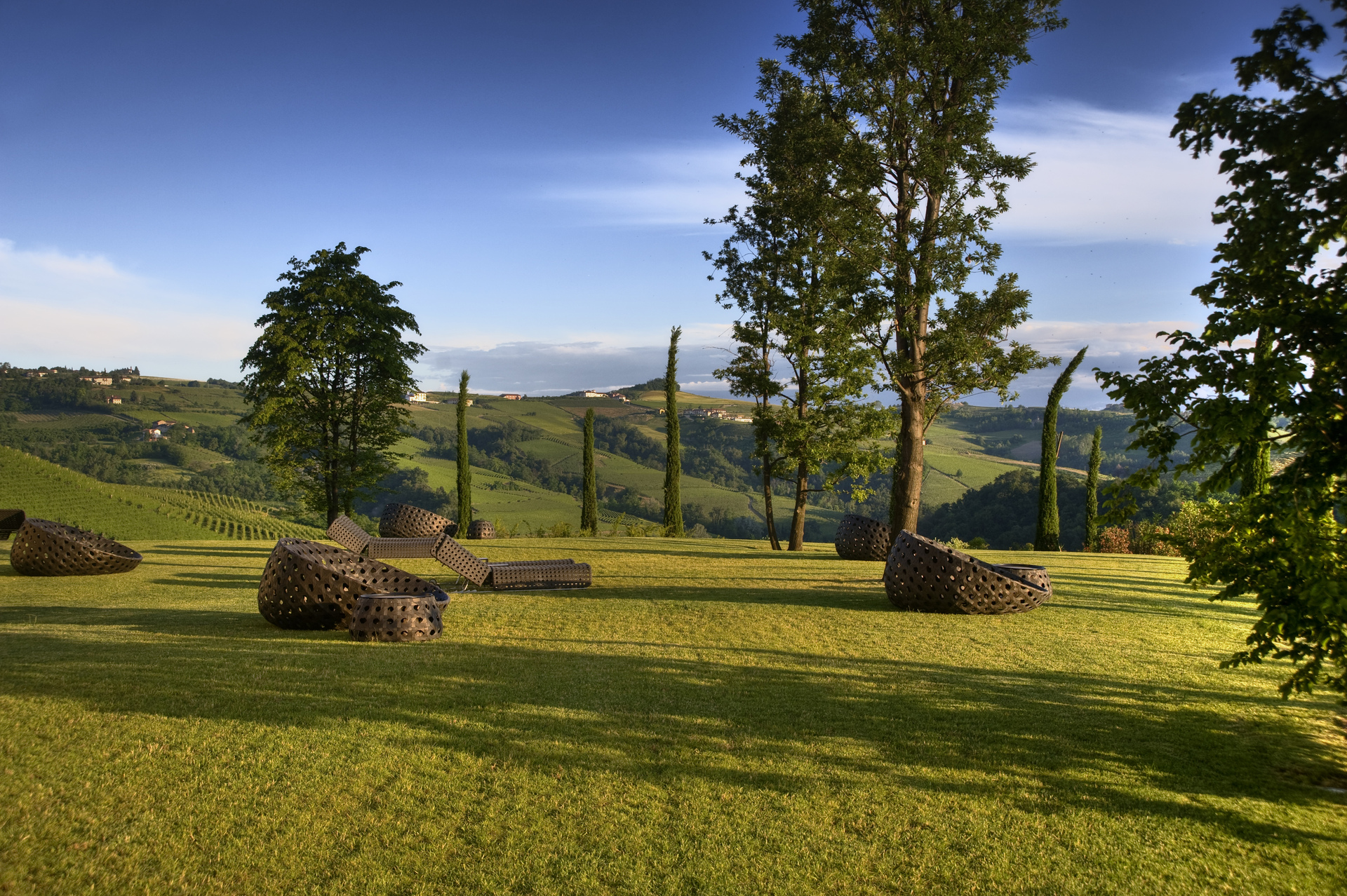 Sita nel cuore delle Langhe, circondata da ettari di vigneti, la struttura ricettiva del Boscareto Resort si articola e si amalgama con il vero protagonista del territorio: il parco circostante.