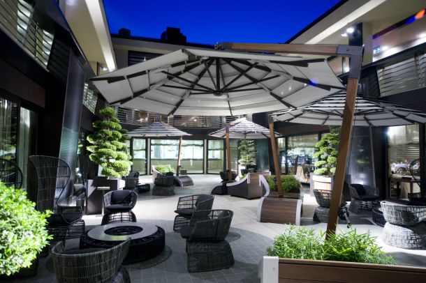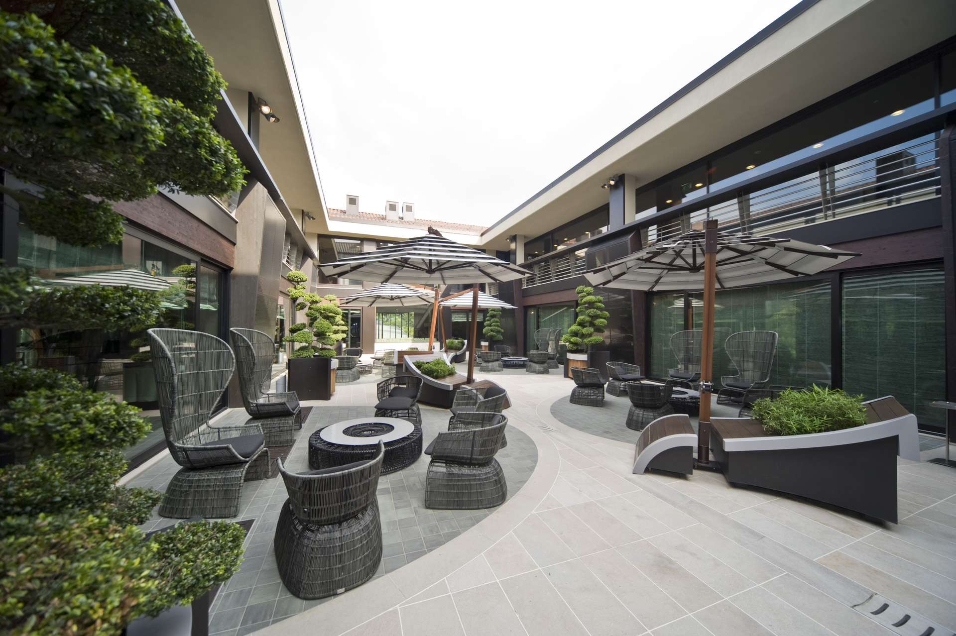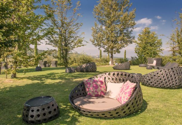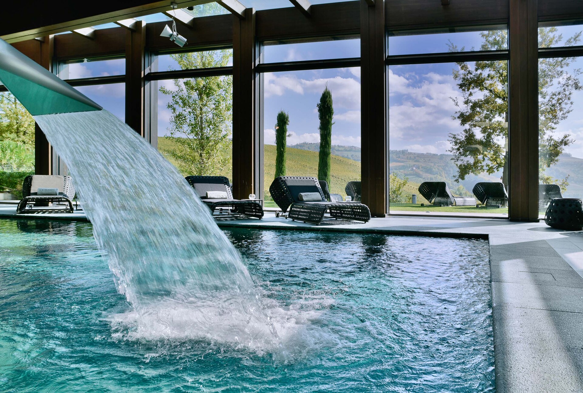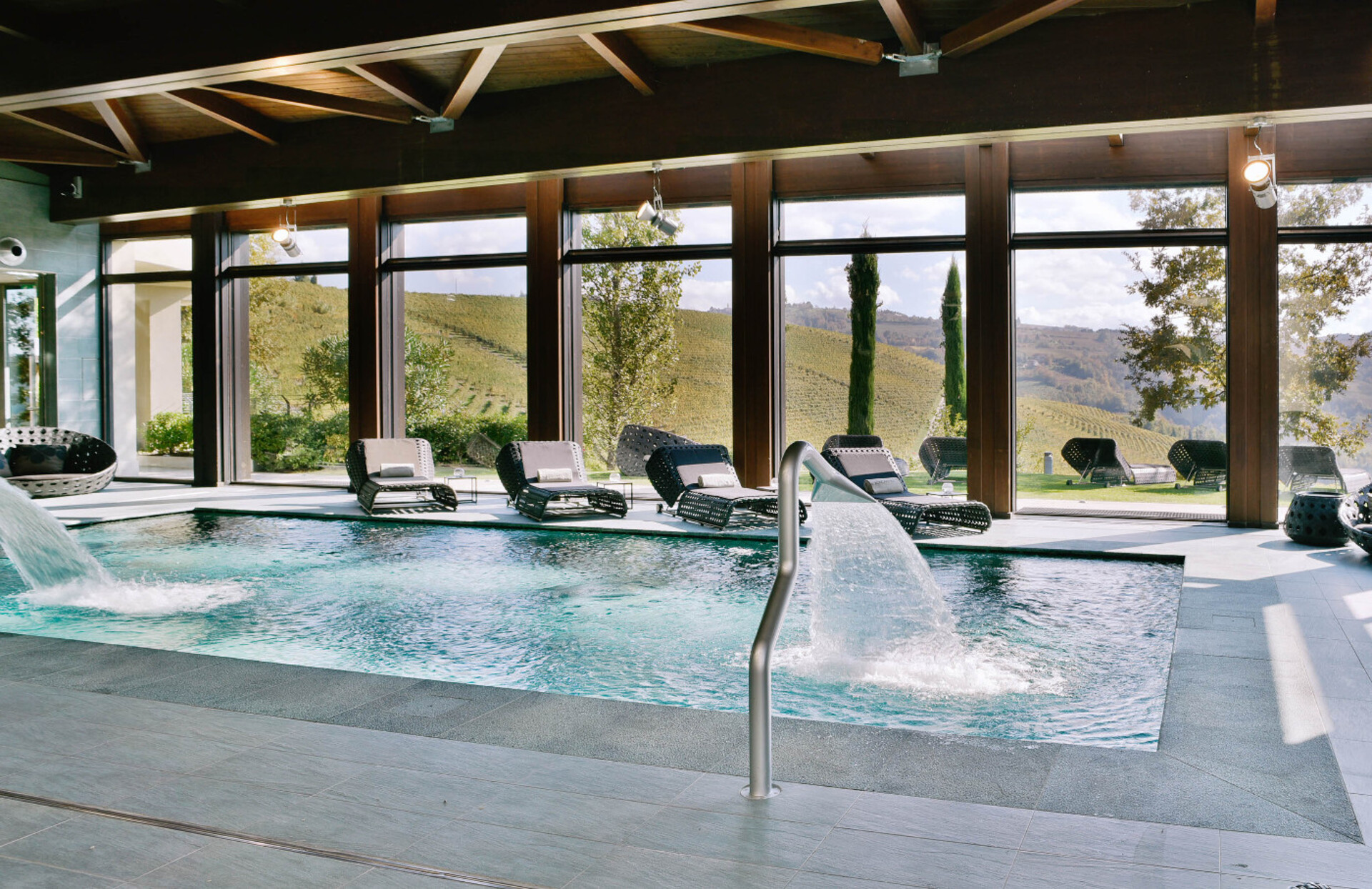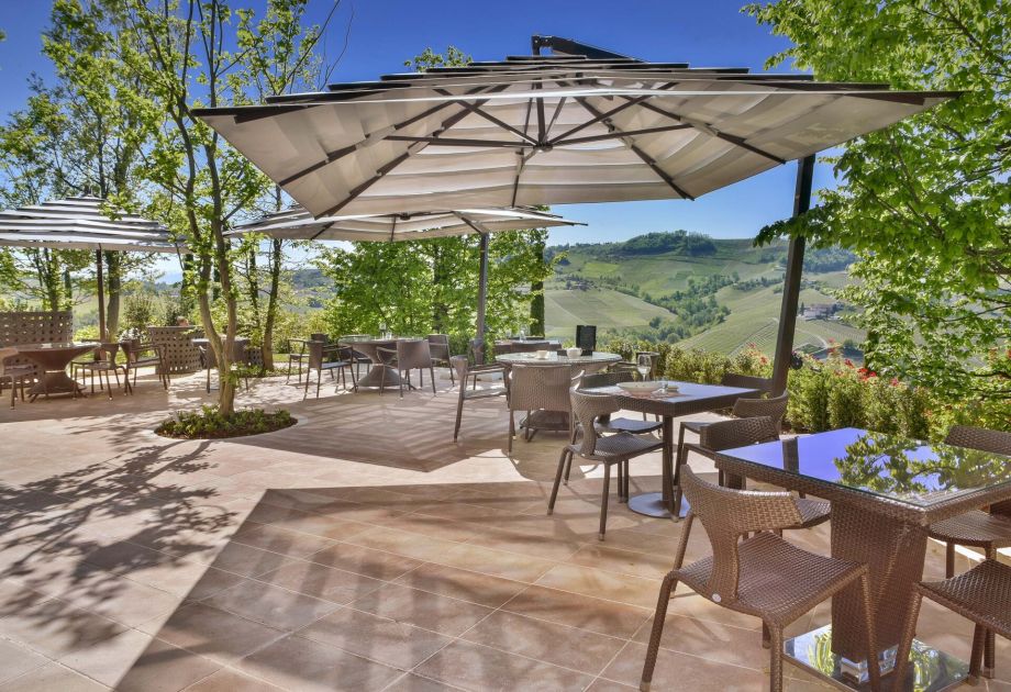 Sita nel cuore delle Langhe, circondata da ettari di vigneti, la struttura ricettiva del Boscareto Resort si articola e si amalgama con il vero protagonista del territorio: il parco circostante.