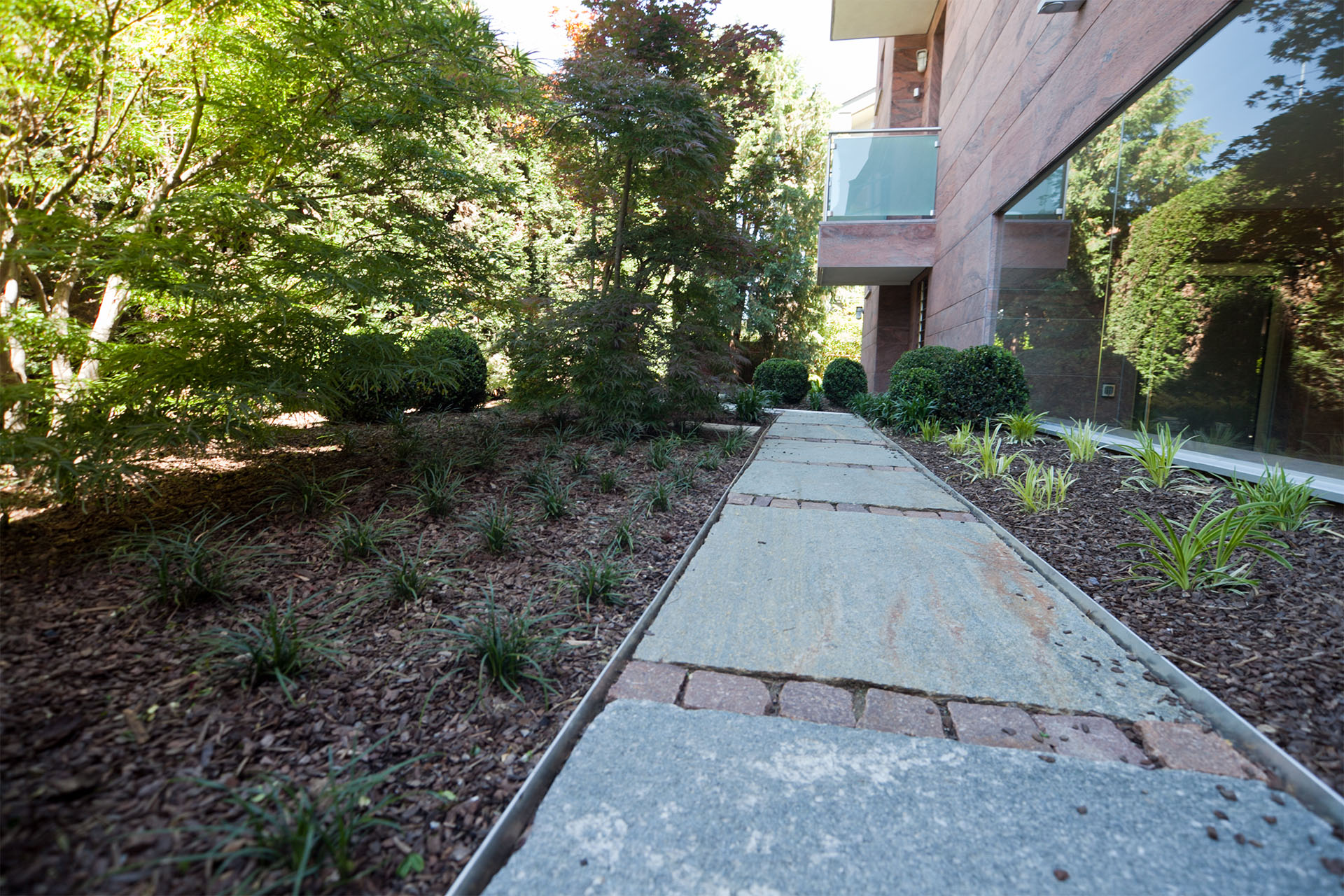 In una prestigiosa villa piemontese di recente ristrutturazione, Armando progetta e realizza un verde contemporaneo, minimalista e dai connotati orientali.