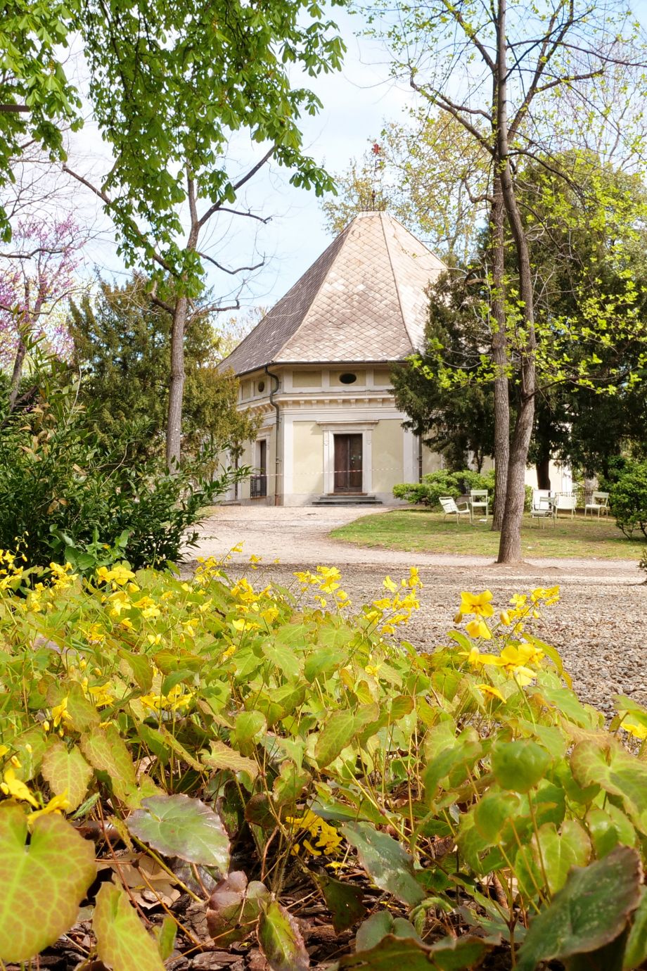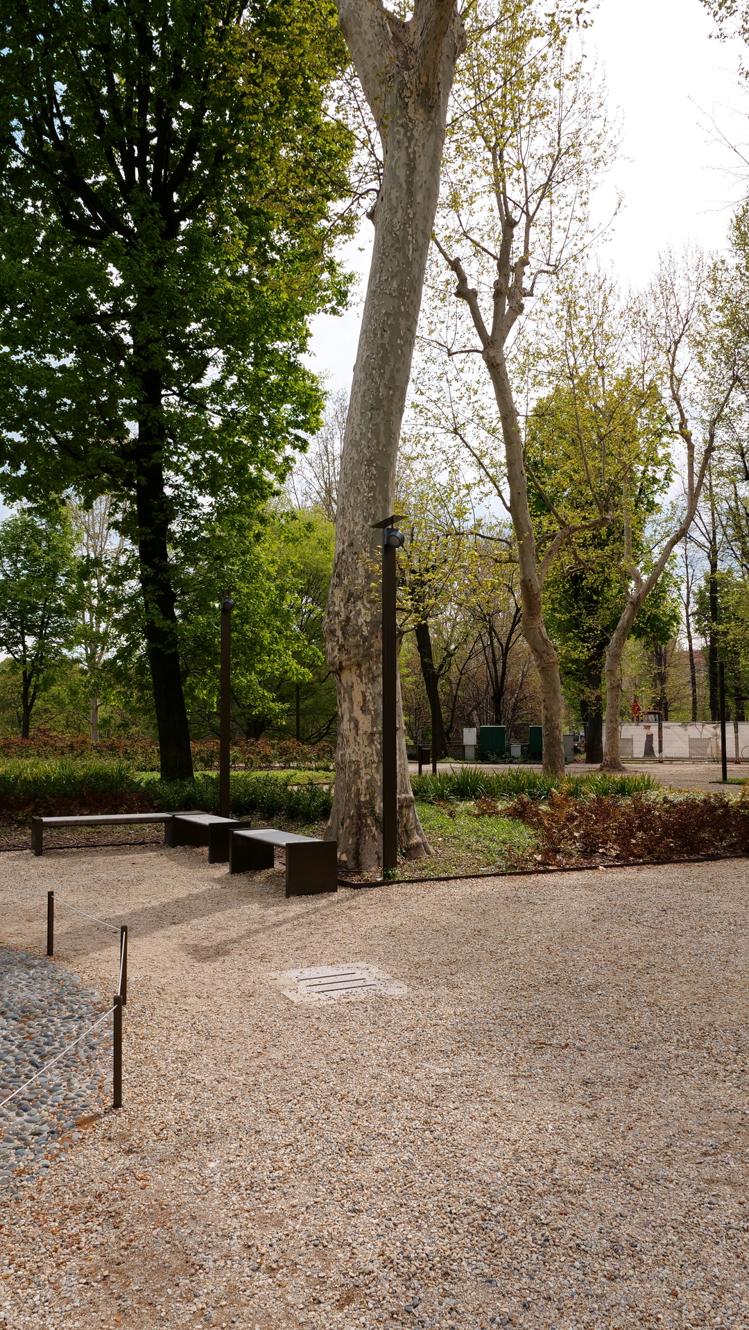 L'intervento vede una coltre di piante da ombra, arbusti ed erbacee a creare un gioco di ombre, mentre ampi viali ortogonali definiscono gli spazi in grandi aiuole dalle forme regolari.